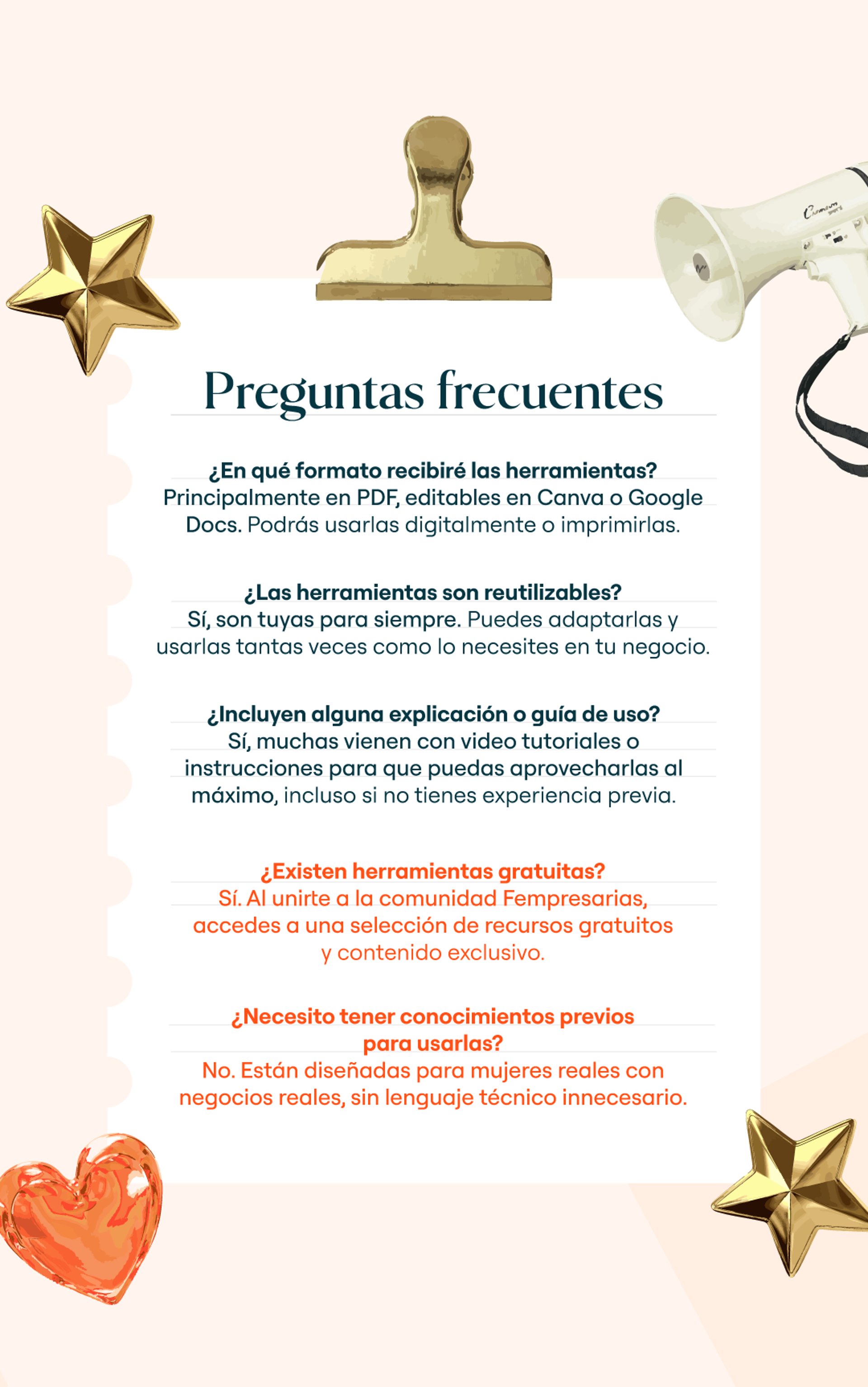 Sí. Al unirte a la comunidad Fempresarias, accedes a una selección de recursos gratuitos y contenido exclusivo.