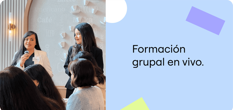 Aprende en sesiones en tiempo real junto a otras mujeres como tú.