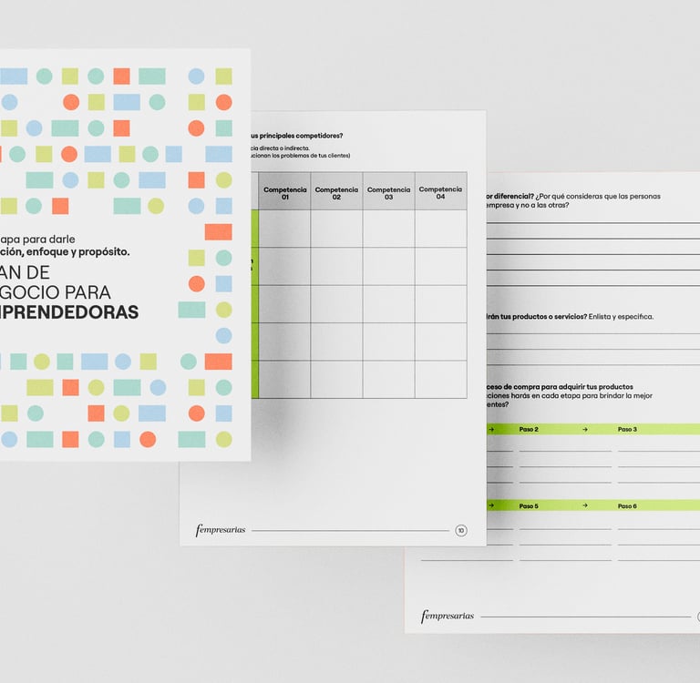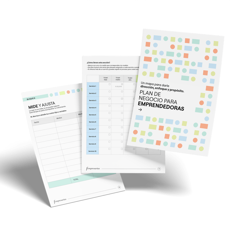 Recibirás un documento en PDF editable e imprimible, con ejercicios prácticos, guías para aterrizar tu idea de negocio, planificar, y comenzar a tomar decisiones con foco.